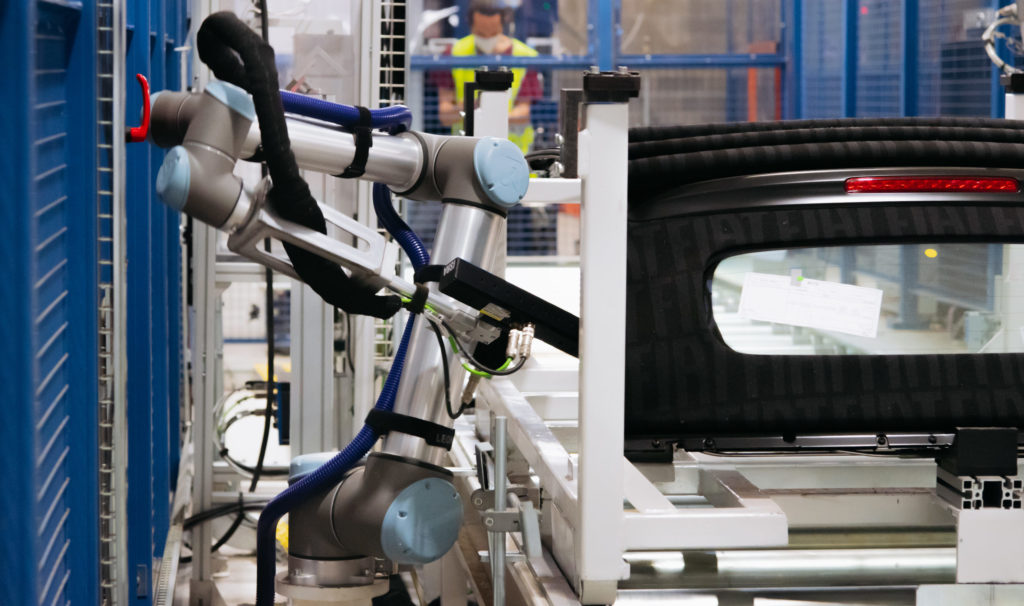 Il nostro robot industriale collaborativo più popolare, l’UR12e, supporta i clienti a livello globale nell’automazione di attività regolari come la pallettizzazione, l’asservimento macchine e la saldatura. Consente inoltre lo sviluppo di soluzioni incredibilmente creative, come la raccolta di plastica nei fiumi, la produzione di vetro o le soluzioni di rifornimento per auto.
